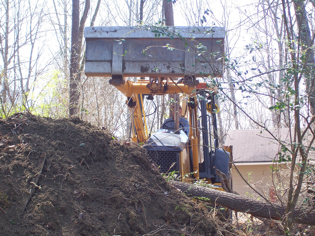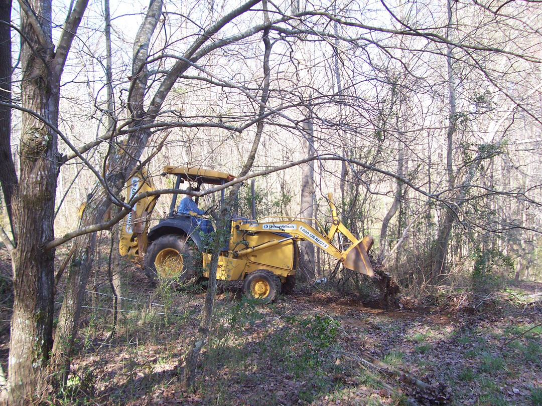 There is a big rock next to those trees that I need to move out of the way. My new backhoe thumb would have been handy then! I could have just picked it up and carried it instead having to push and pull it around.