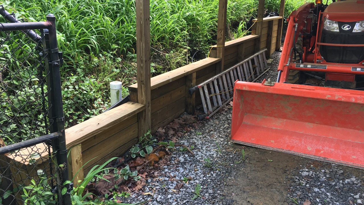 With the rock out of the way, I used a combination of my tractor’s front end loader, backhoe and box blade to clear and smooth out the ground behind the carport.