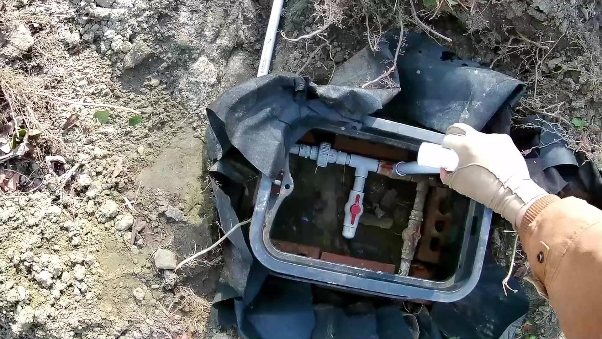 The old water line to the pool house left the valve box as shown in the picture below.