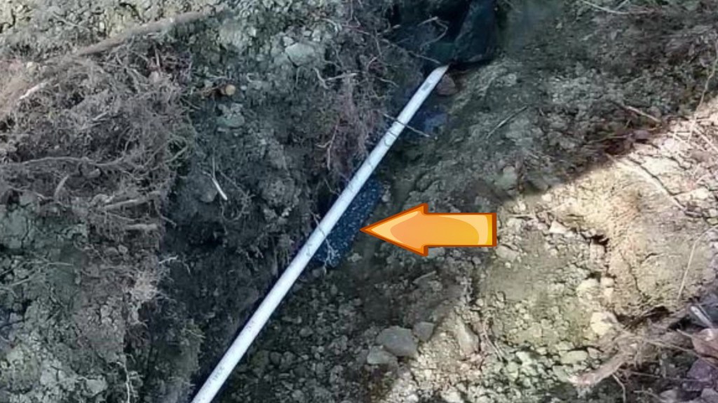A short piece of PVC pipe is quite stiff, but long lengths are like a wet noodle, which worked to my advantage through the curves of the trench.