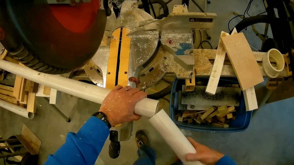 Next I took measurements to find the lengths of the 2” and 4” pipes. Then took them to my basement shop to cut to length. When I don’t have a deburring tool handy I use the PVC pipe pieces themselves do the job.