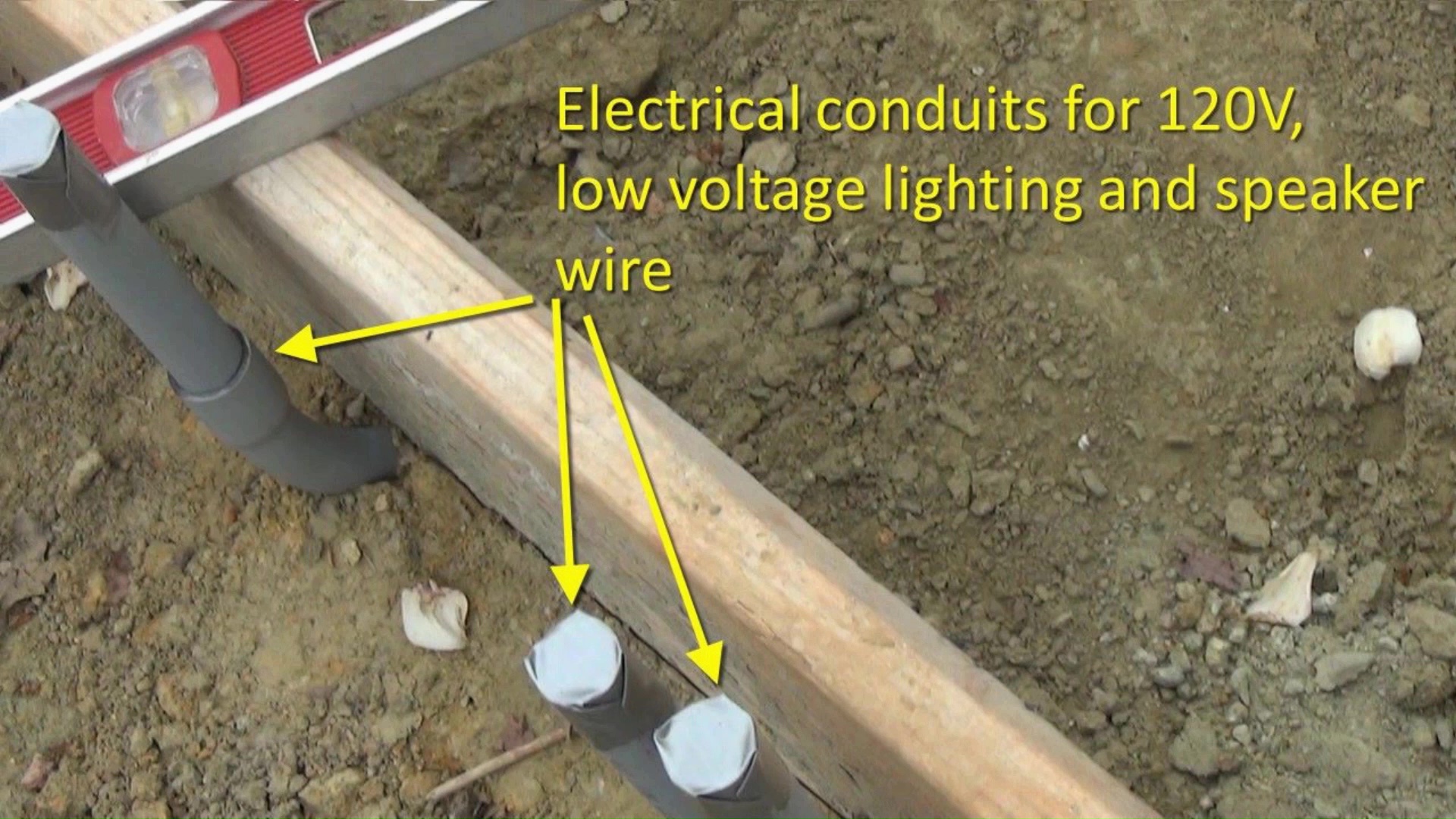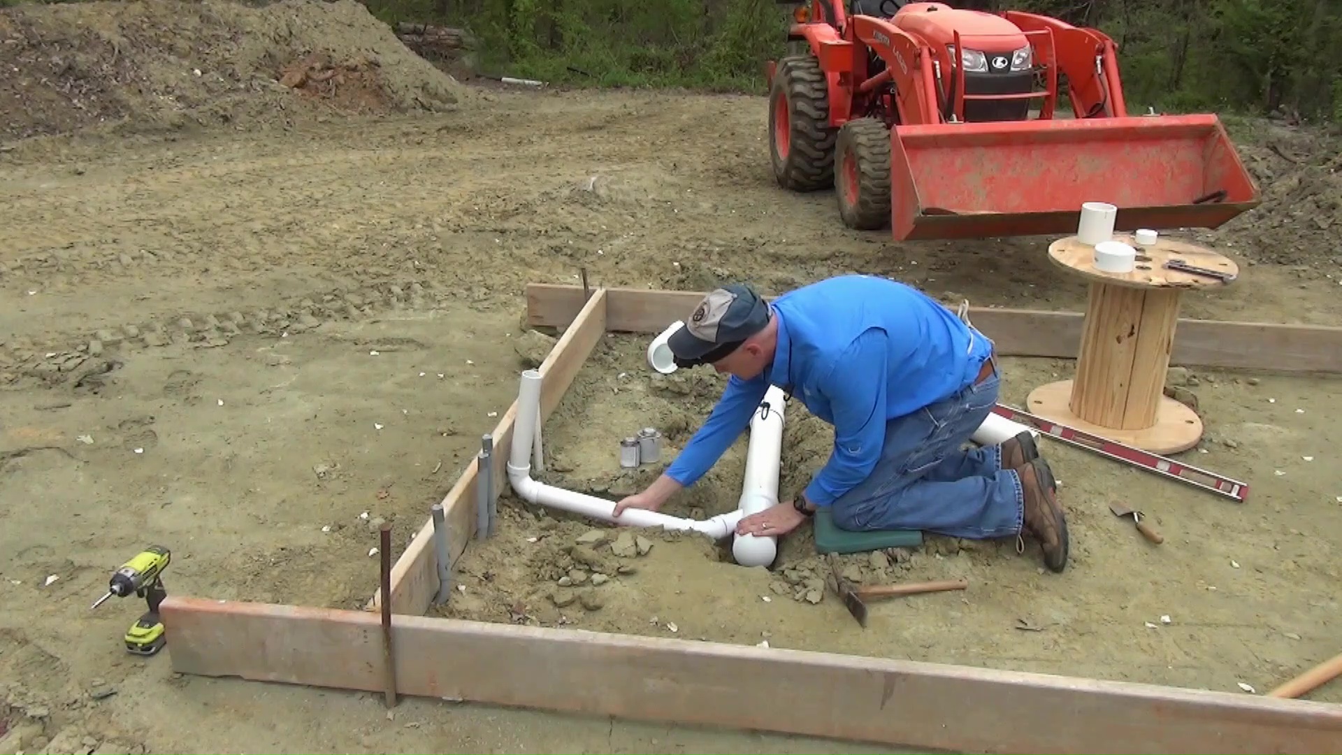 I made marks on the form board indicating where studs will be so that I can position the pipes in between, which include a Toilet, the water line and a combination sink drain and vent, also known as a wet vent. I also included some stub outs for power, low voltage lighting and spearker wire. BTW, I’ll install a small septic system behind the pool house. It won’t take much of one since this is a seasonal bathroom that won’t get much use.