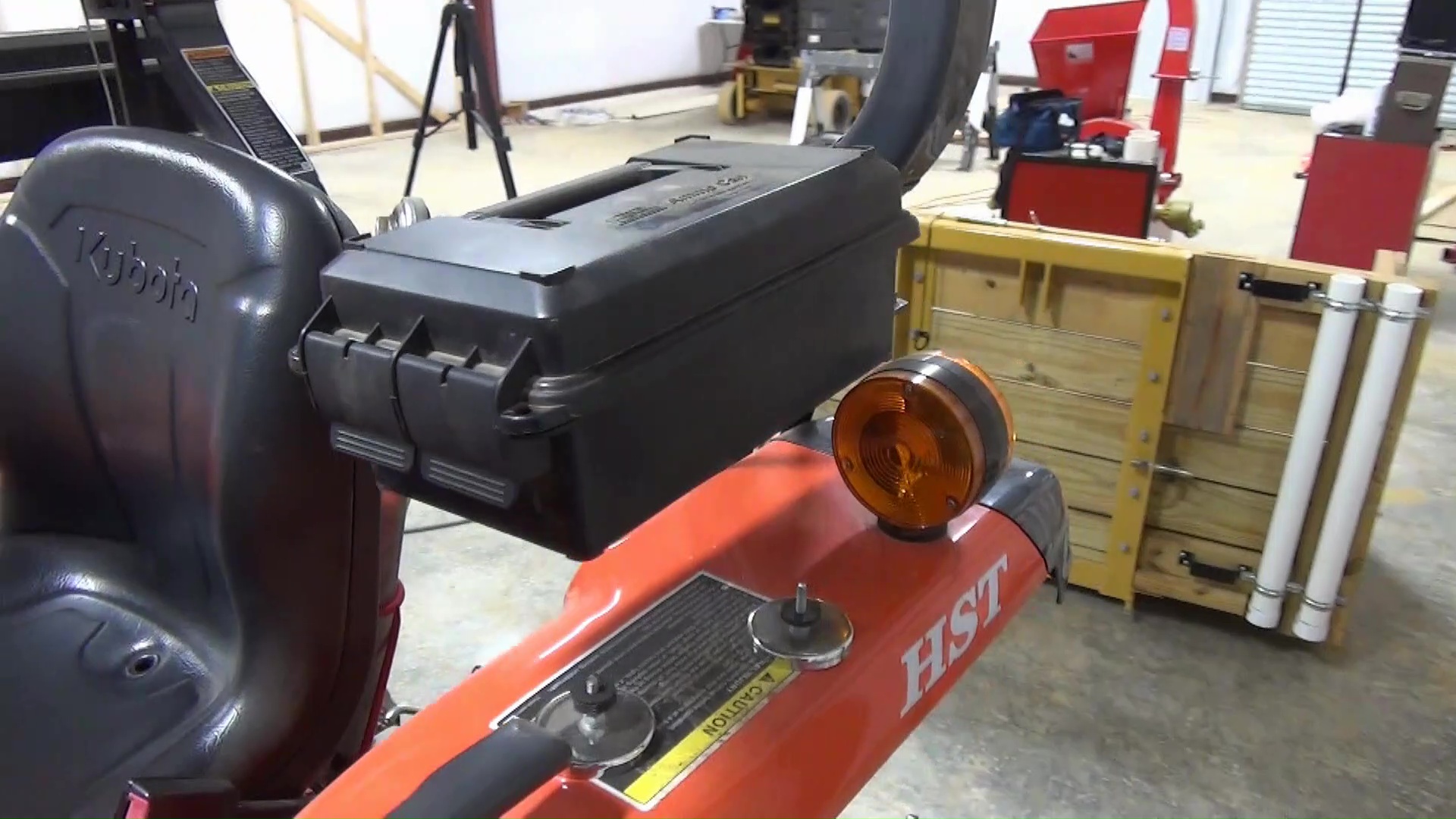 Most tractors only come with a dinky little tool box if they have one at all. That was the case with my tractor. The left side tool box simply replaced the rather pitiful one that came with the Kubota. This is a plastic ammo can that provides much more storage and is water tight. I liked the first one so much that I later added one on the right side. In the video on these storage boxes, I’ll go over my choice of ammo boxes, how I mounted them and what I keep in each one.