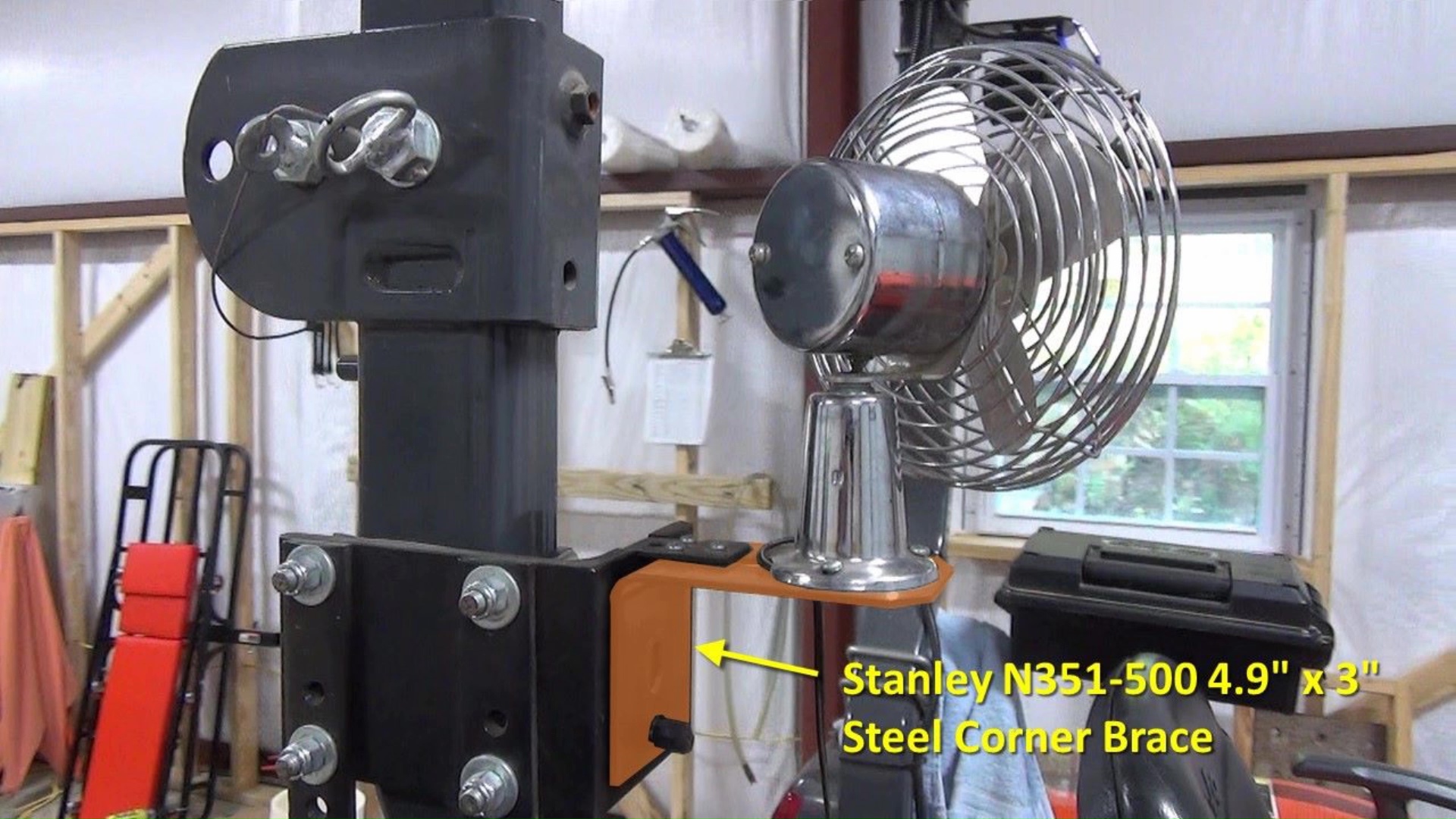 The fan is mounted to a 4.9” x 3” steel corner brace made be Stanley – same as the ones I used on the side LED lights. Only I cut about an inch off the bottom, but that’s optional.