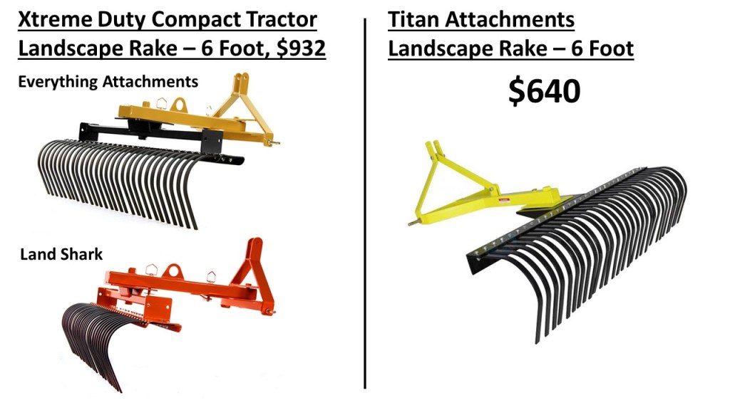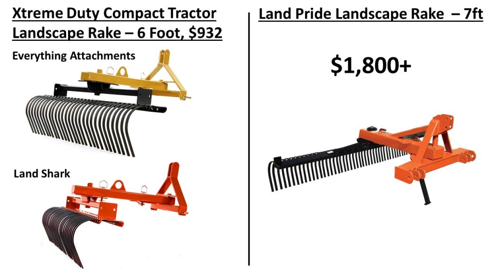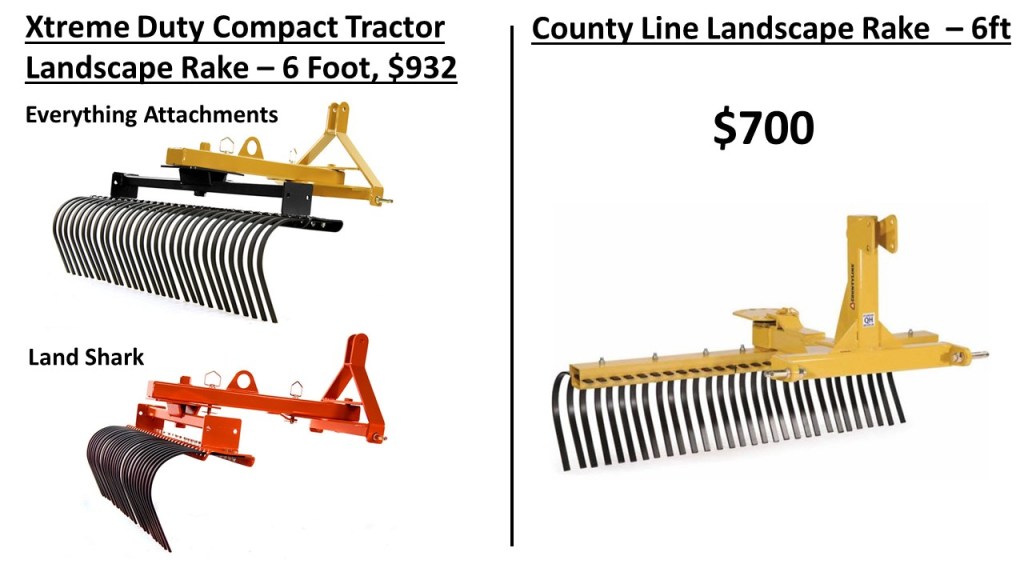 So, is the rake worth it? Let me put it into perspective for you. The 6 foot Xtreme Duty rake costs $932, which is certainly a big investment. But when I looked at other less expensive options, like a 6 foot rake from Titan Attachments at $640 or a 6 foot County Line landscape rake for $700. The build quality and features just weren’t there. I also consider a Land Pride rake. The only model with similar build quality and features was their 7ft LR3784 rake, but it’s priced at $1,800 or more. So, for me, the Everything Attachments rake seemed like a great value.