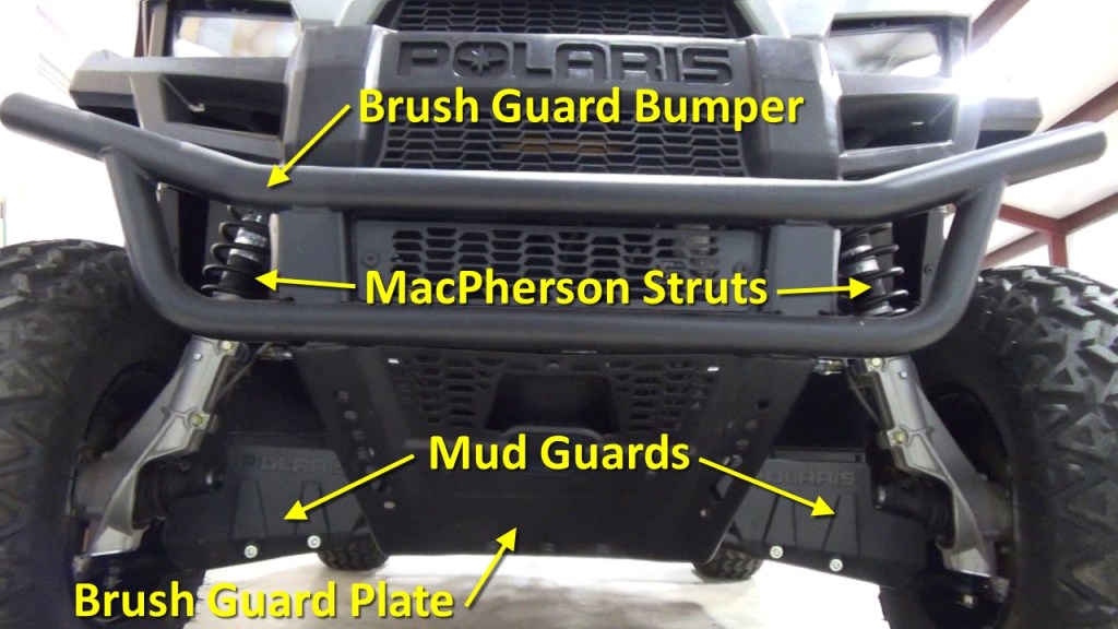 Another interesting difference is the size of tires. The EV has 25x9x12 Carlisle All Trail tires front and rear compared to 25x8x12 front and 25x10x12 rear for the 570 and 500. They all have stamped steel wheels, MacPherson Strut front suspension and Dual A-Arm independent rear suspension.