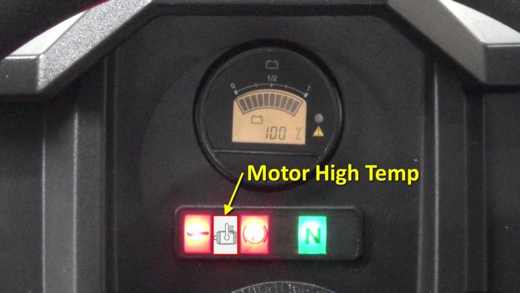 Below the LCD display are a set of indicators including forward, neutral, reverse, parking brake, and electrical system error which is also used to indicate that I’ve done something stupid like push the accelerator with the parking brake on. The one you don’t want to see on is the one that indicates the motor is overheated. Not to worry though. If the motor does get to hot, the system automatically reduces power to the motor to avoid overheating. If it does get overheated, the system won’t run at all until the motor has cooled down. Fortunately, I have never seen that one come on.