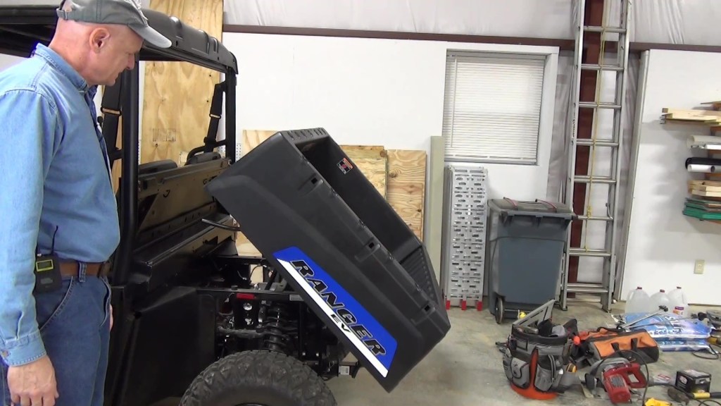 The dump bed is made of a thick and durable plastic and can carry up to 500 lbs of cargo. It also has a dump assist mechanism activated by a handle on the driver’s side. The tailgate is easy to operate with simple but secure latches that have holes for a wire lock safety pin, if desired.