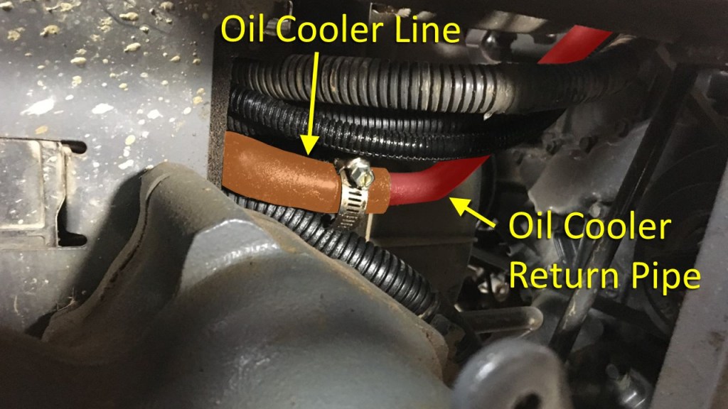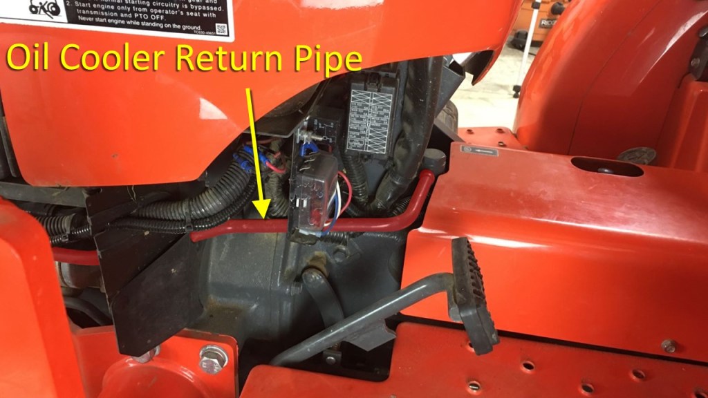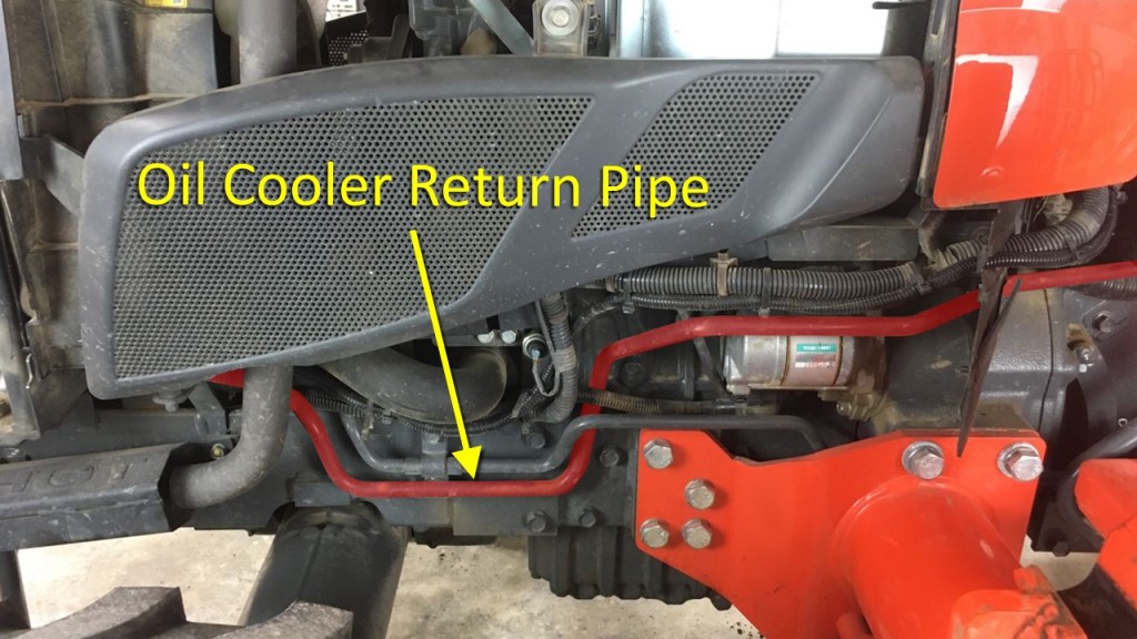 The end of the Oil Cooler Line connects to the Oil Cooler Return pipe, which carries the cooled hydraulic oil back to the transmission case.