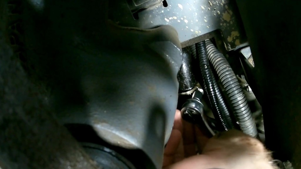 Recently I noticed a small puddle of liquid on the ground under my front axle when I had stopped the tractor during using it for landscaping. After I was done and parked it in the shop, I again notice a small puddle of liquid below the front axle. At first inspecting there was I thought it might be coming from the power steering system and feared I was in for an expensive repair. Fortunately, after further inspection, I found the leak was due to a loose hose clamp on the oil cooler line, which is really a section of flexible hose.