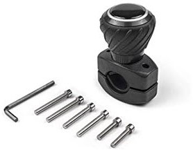 Installation is really easy. I mounted mine at the 12 o’clock position but you can mount it anywhere that works best for you. Place the knob portion on the underside of where you want to mount it. Put the bottom half on and screw in one screw just enough to get the threads started. Then do the same thing with the second screw. Alternate tightening the two screws until it starts to snug up to the steering wheel. Rotate the knob portion to the top of the steering wheel and start alternately tightening the screws a couple of turns at a time until the spinner is firmly attached.