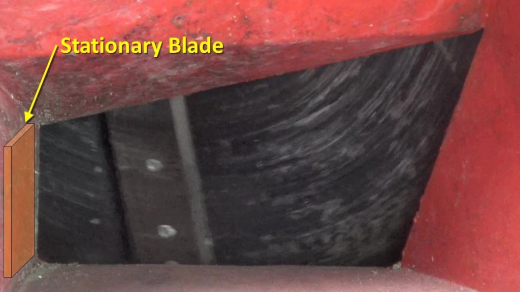 When preparing to use the chipper for the first time, the most important step is to make sure the gap between the rotor blades and the fixed blade is set correctly. The gap can vary slightly from one rotor blade to the next so spin the rotor slow to see if there is one that looks closer than the others. This is the one I’ll use to set the gap for all of them.